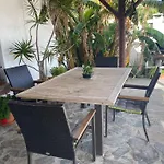 Gli ospiti possono riposare su una terrazza con vista sul giardino.